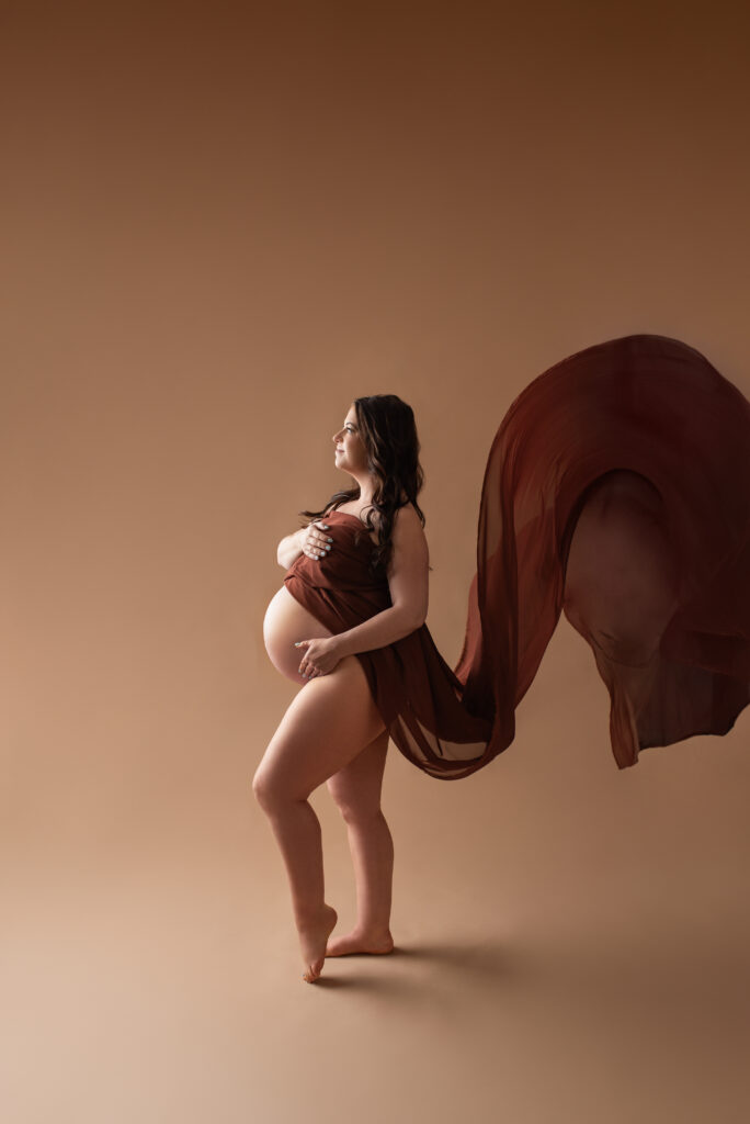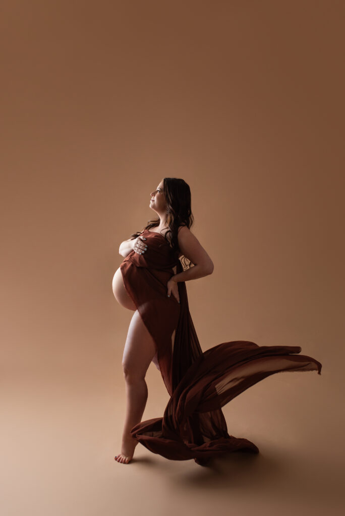 - The Client Closet: Mary had full access to my curated wardrobe of designer maternity gowns and fine art fabrics. From rich, velvet textures to ethereal silks, every piece is chosen to drape perfectly over a growing bump.